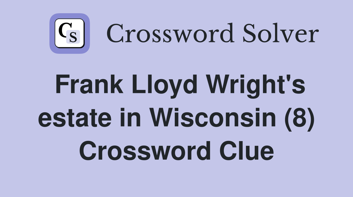 Frank Lloyd Wright #39 s estate in Wisconsin (8) Crossword Clue Answers