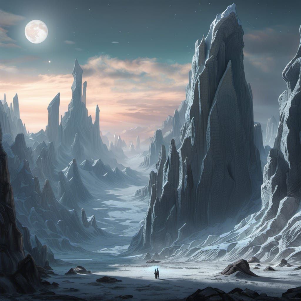 A frozen realm of frost giants an icy planet with no sun on the sky