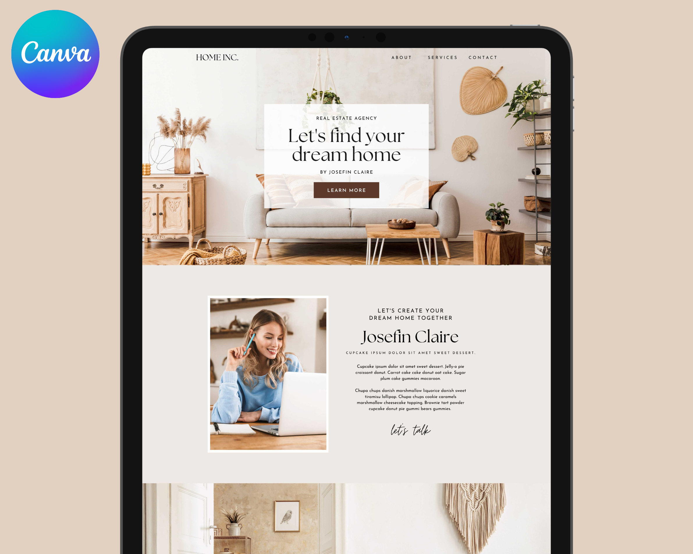 Realtor Website Template Canva HOME INC Interior Designer Architect