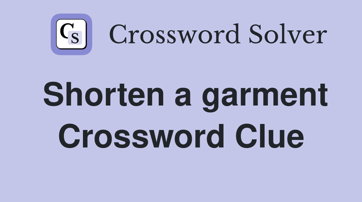 Shorten a garment Crossword Clue Answers Crossword Solver