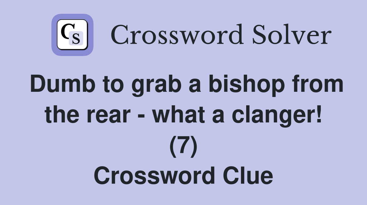 Dumb to grab a bishop from the rear what a clanger (7) Crossword