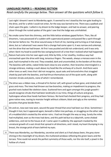 AQA style PAPER 1 full mock exam for Daphne Du Maurier #39 s #39 Rebecca
