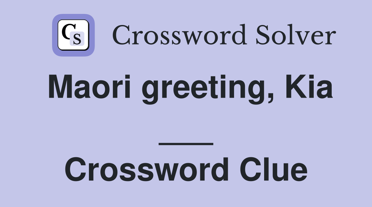 Maori greeting Kia Crossword Clue Answers Crossword Solver