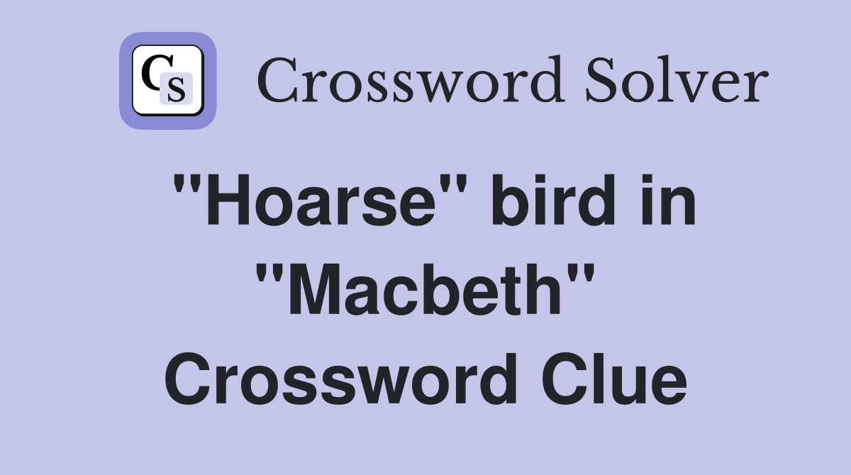 #39 #39 Hoarse #39 #39 bird in #39 #39 Macbeth #39 #39 Crossword Clue Answers Crossword Solver