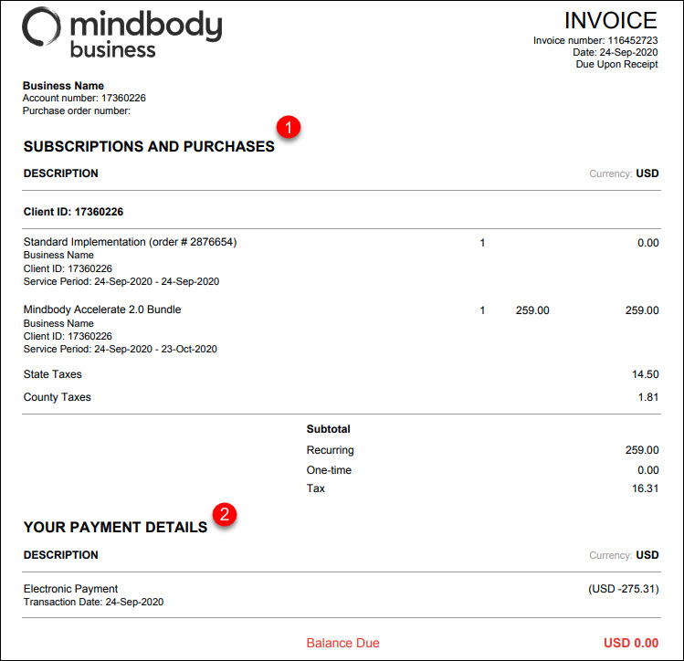 Understanding your Mindbody Business Subscription invoice (Booker)