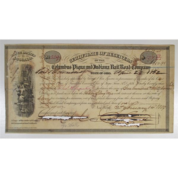 Columbus Piqua and Indiana Rail Road Co 1859 Certificate of Receivers