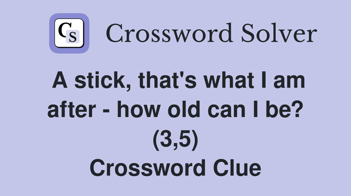 A stick that #39 s what I am after how old can I be? (3 5) Crossword