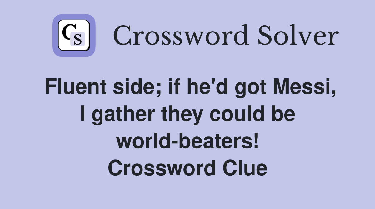 Fluent side if he #39 d got Messi I gather they could be world beaters