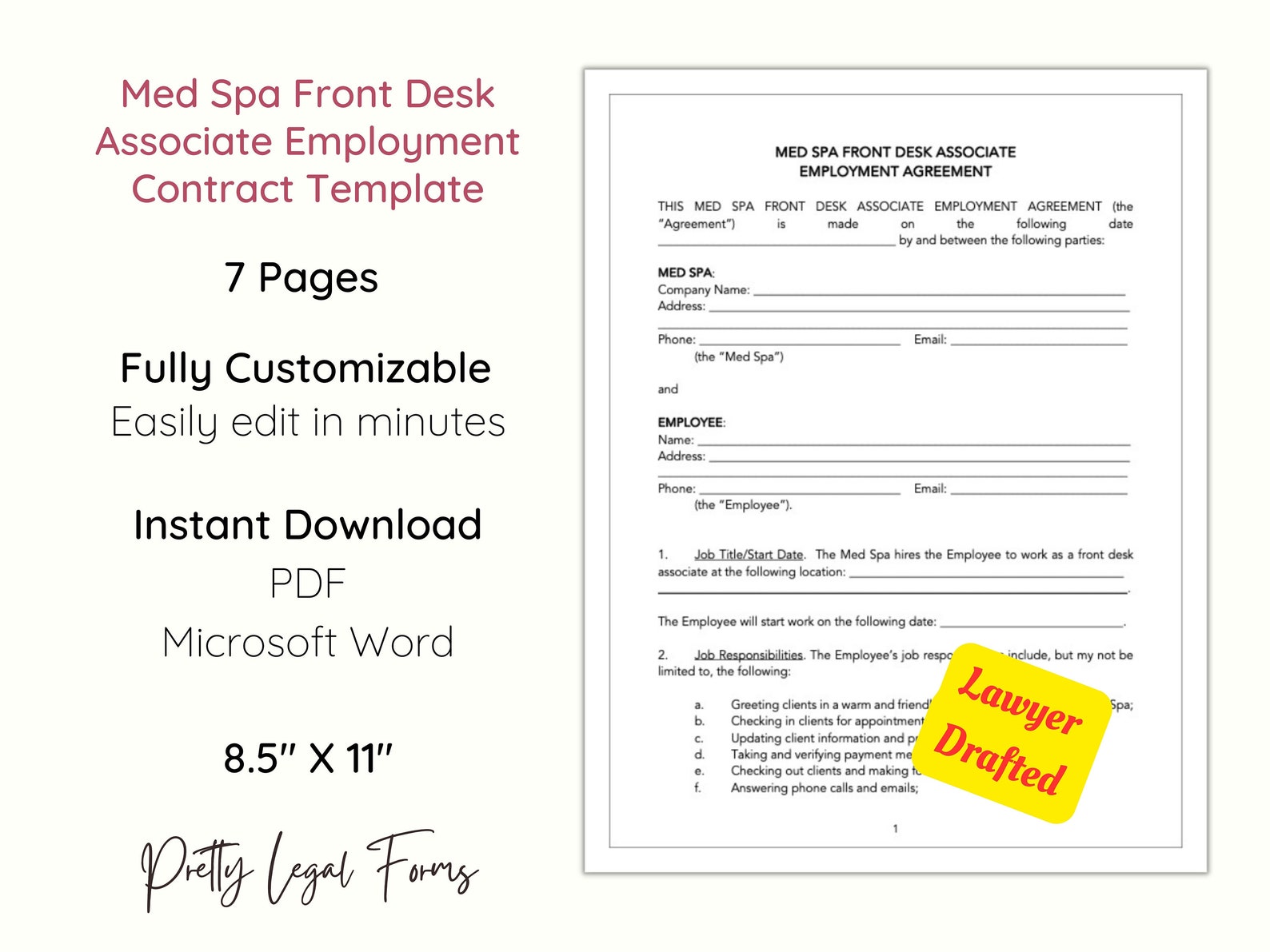 Medical Spa Front Desk Associate Employment Contract Template Med Spa
