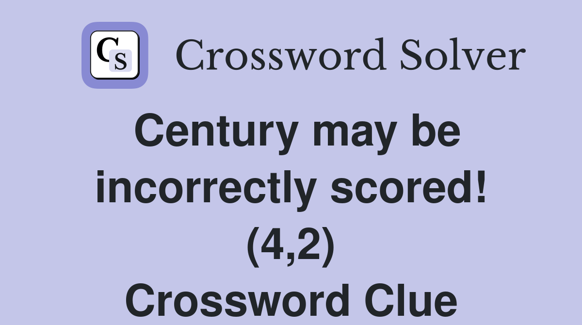 Century may be incorrectly scored (4 2) Crossword Clue Answers