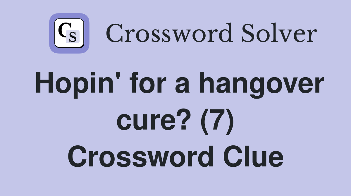Hopin #39 for a hangover cure? (7) Crossword Clue Answers Crossword Solver