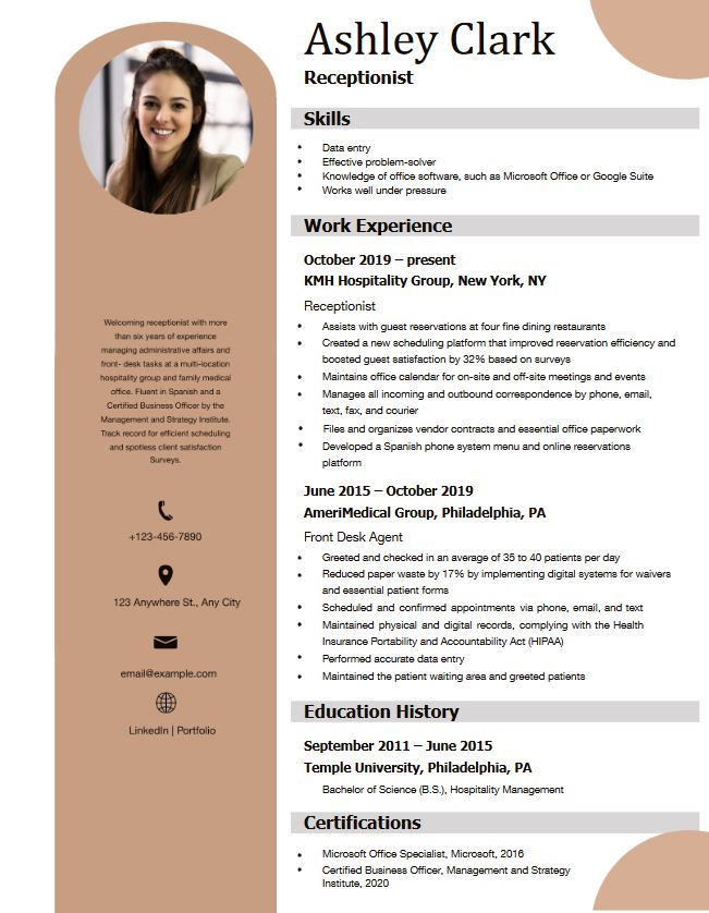 Receptionist Resume Templates and Examples for 2024 ResumeTemplates com