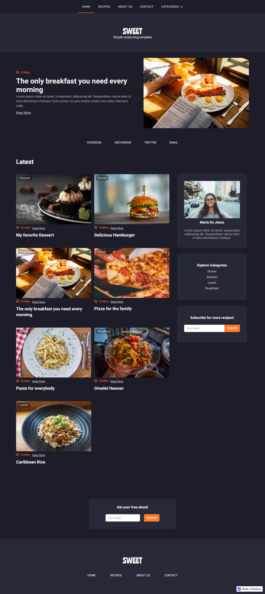 Sweet Webflow recipe blog template