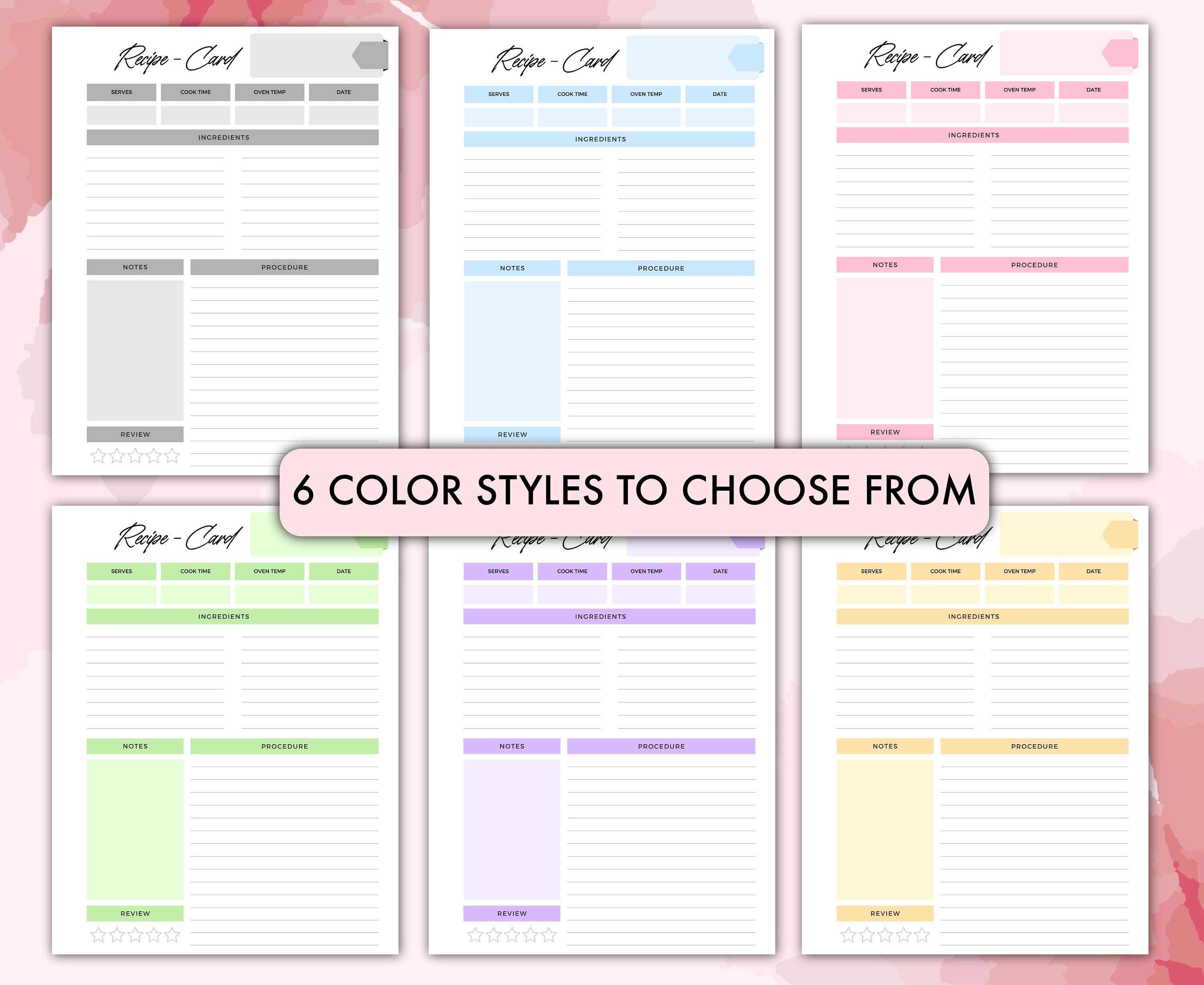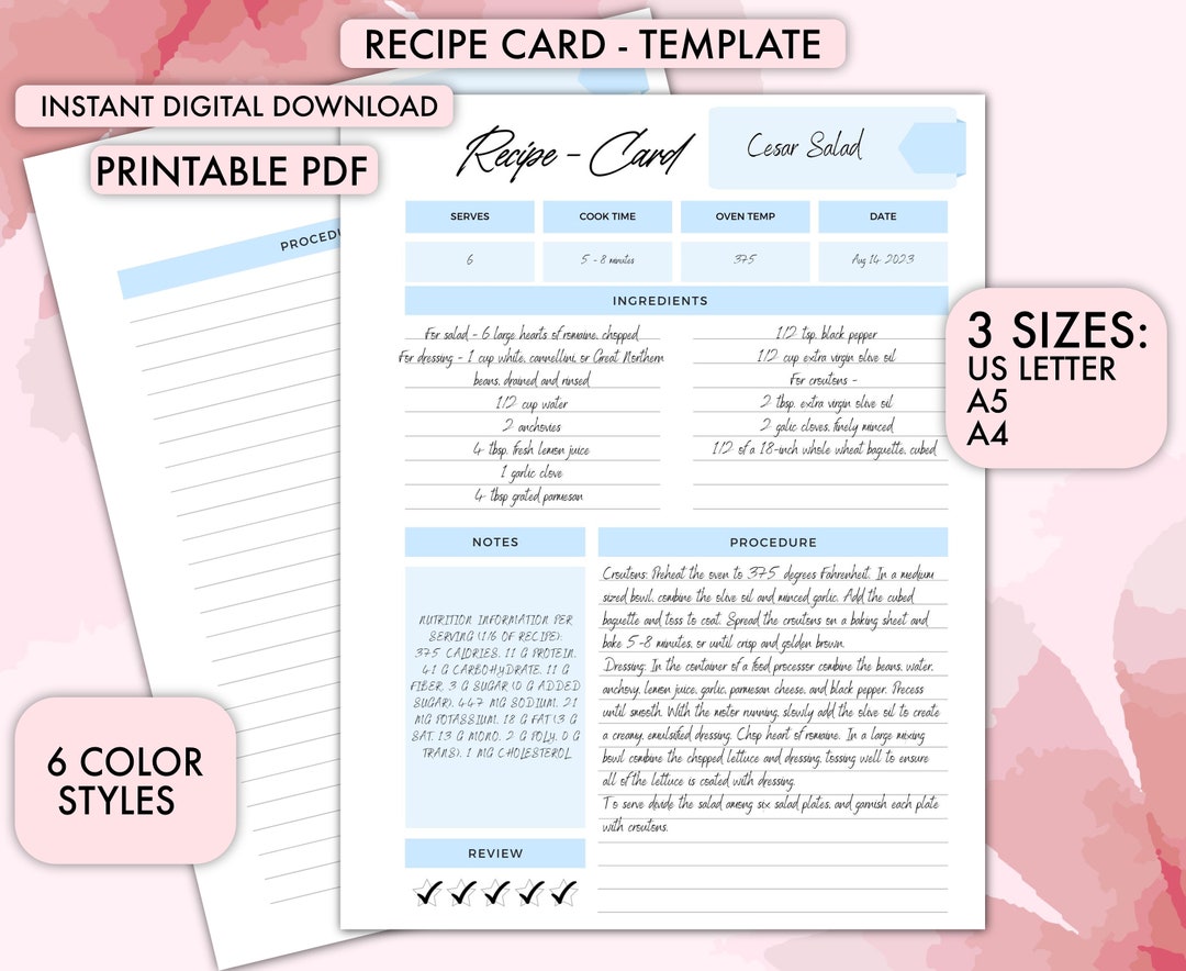 Printable Recipe Card Template Instant Download Editable Kitchen