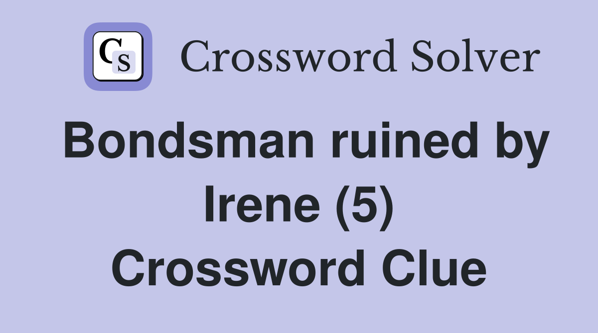 Bondsman ruined by Irene (5) Crossword Clue Answers Crossword Solver