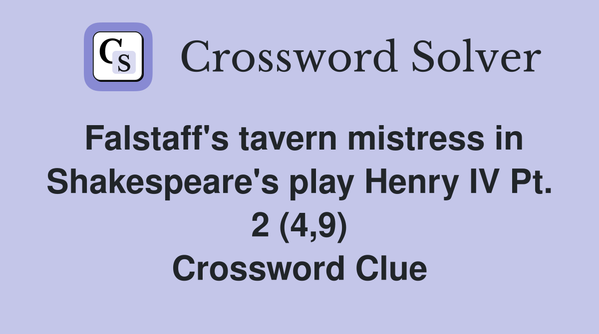 Falstaff #39 s tavern mistress in Shakespeare #39 s play Henry IV Pt 2 (4 9