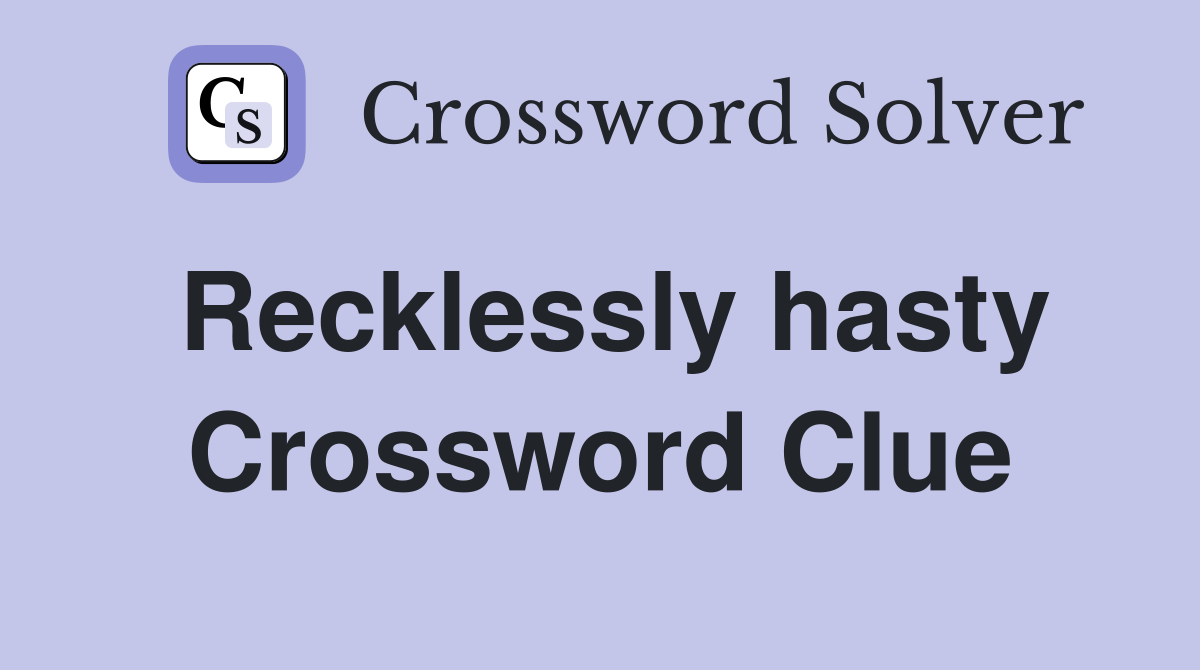 Recklessly hasty Crossword Clue Answers Crossword Solver