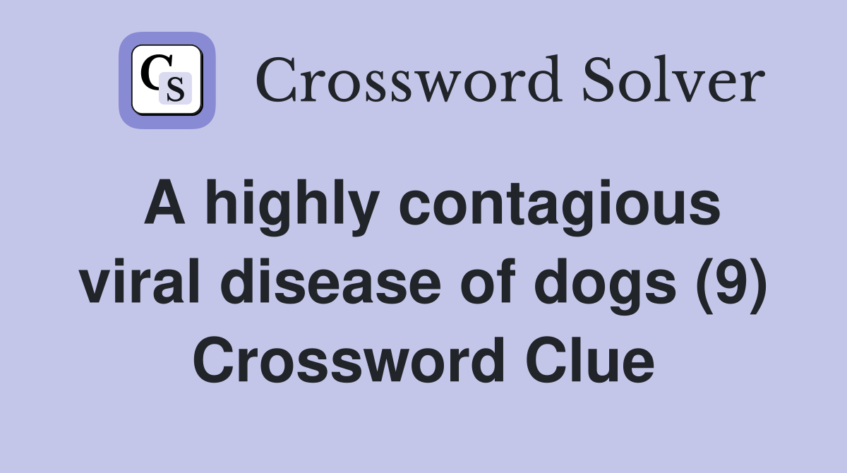 A highly contagious viral disease of dogs (9) Crossword Clue Answers
