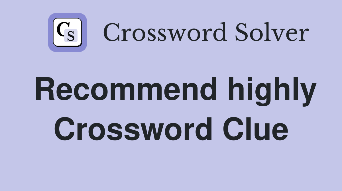 Here are some of the images for Recommend Highly Crossword Clue that we found in our website database.
