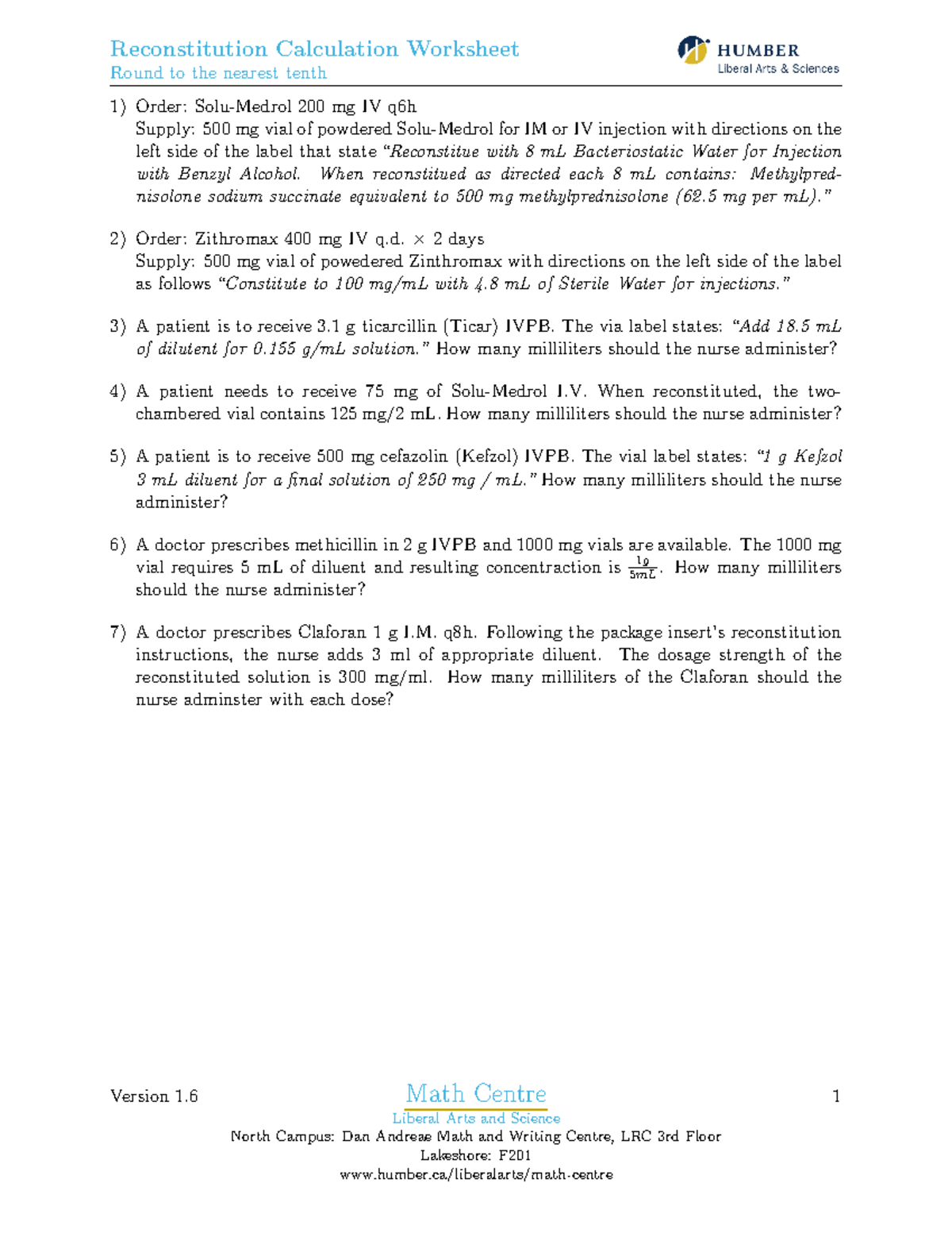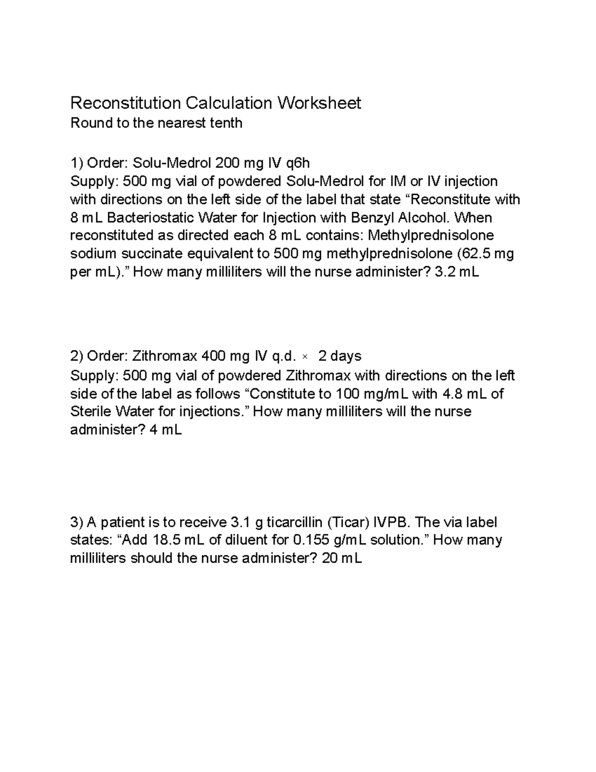 Reconstitution math Reconstitution Calculation Worksheet Round to