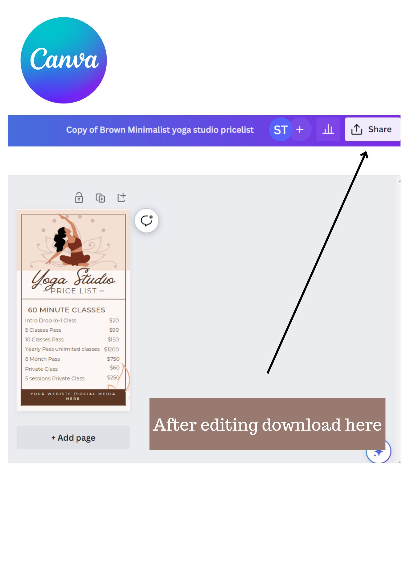 Yoga Studio Price List Template Editable Canva Template for Yoga