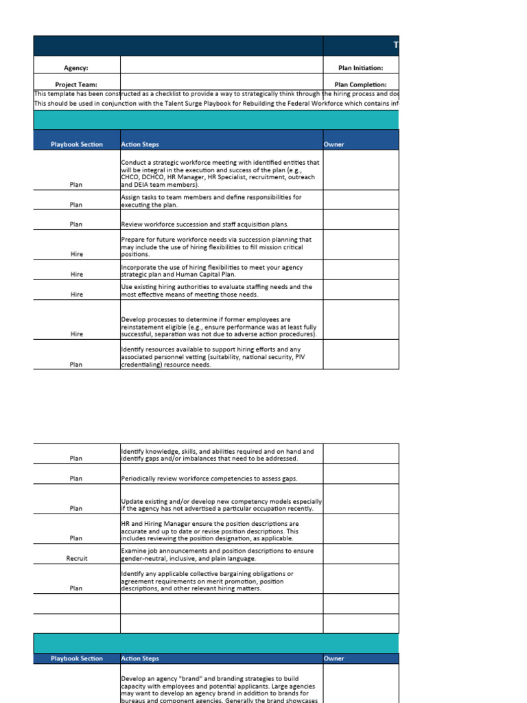 Talent Surge Playbook Action Planning Template PDF Recruitment