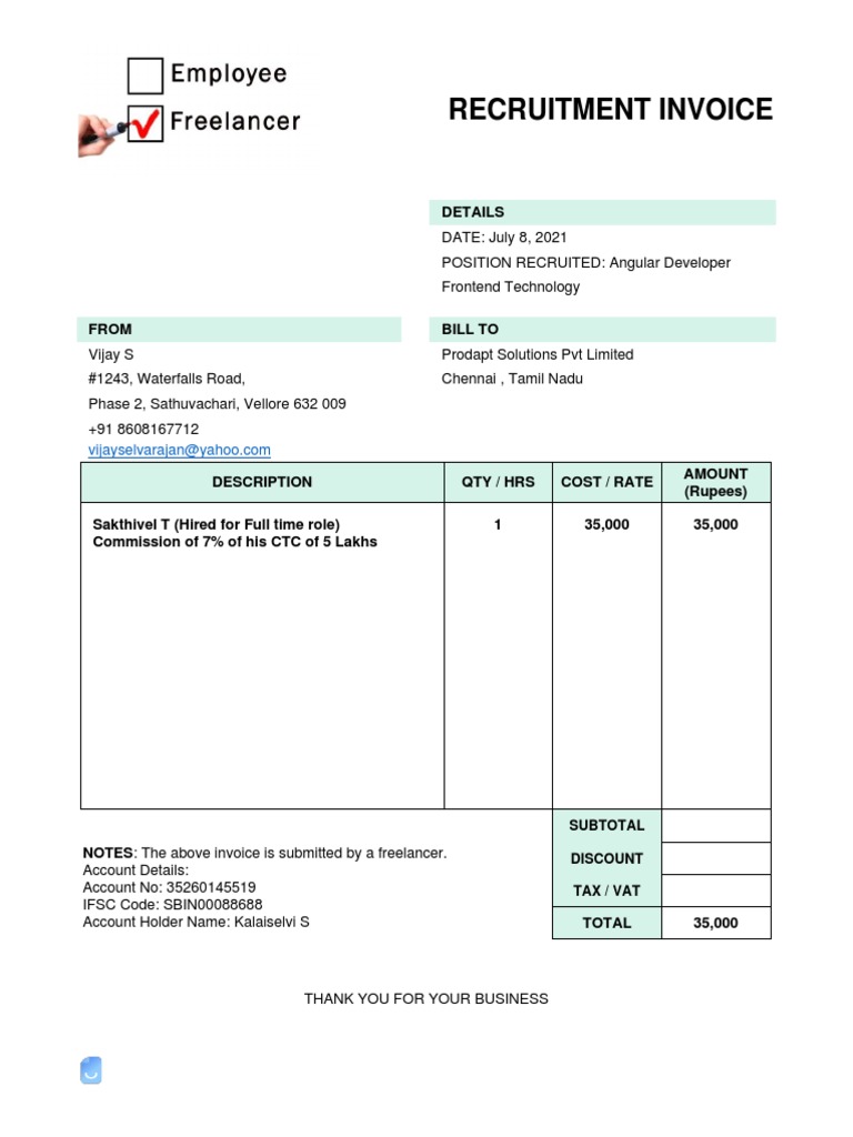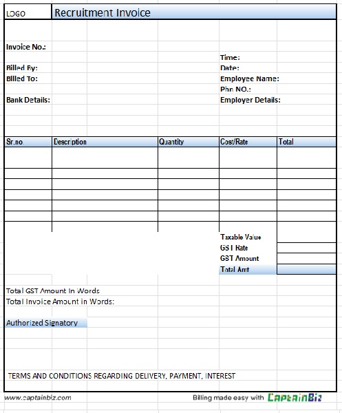 Recruitment Invoice Template and Recruitment Invoice Format CaptainBiz