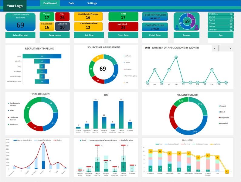 Recruitment dashboard recruitment tracker excel template etsy Artofit