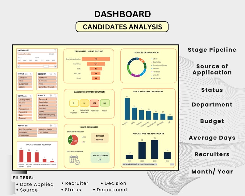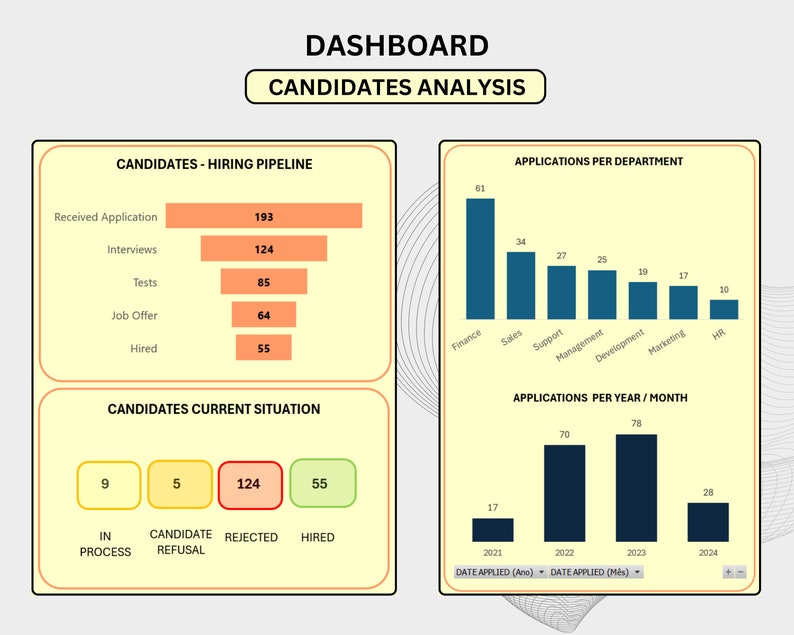 Recruitment Tracker Excel Template: HR Hiring Process Dashboard Etsy