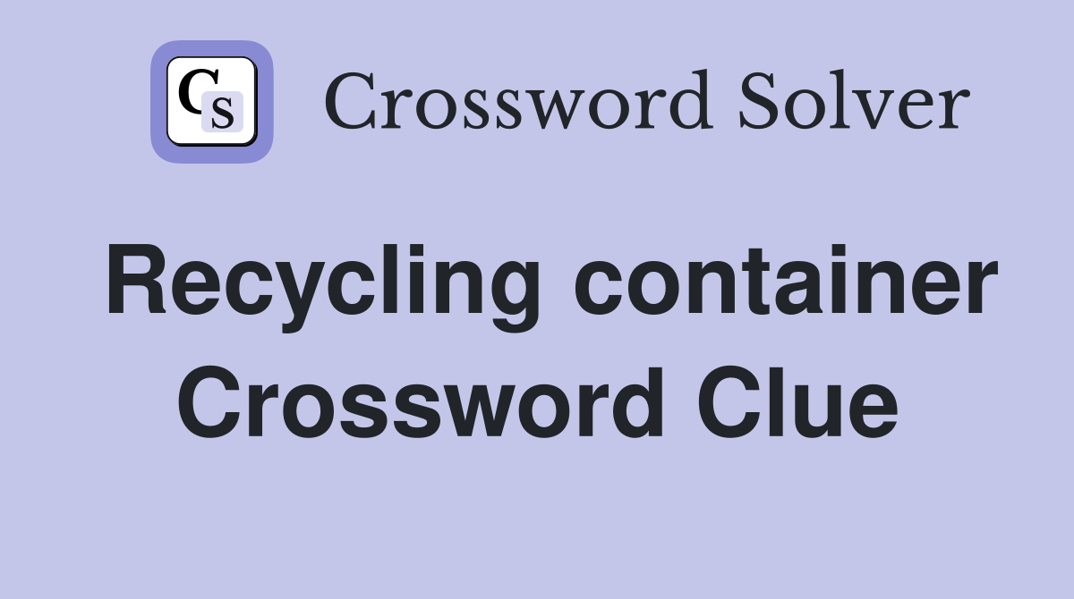 Here are some of the images for Recycling Container Crossword Clue that we found in our website database.