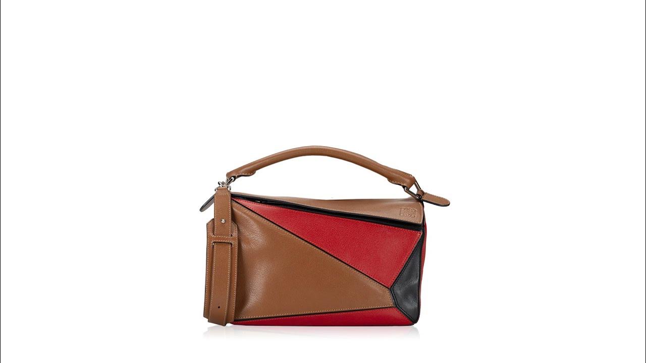 Loewe Goatskin Medium Puzzle Bag Tan Black Red YouTube