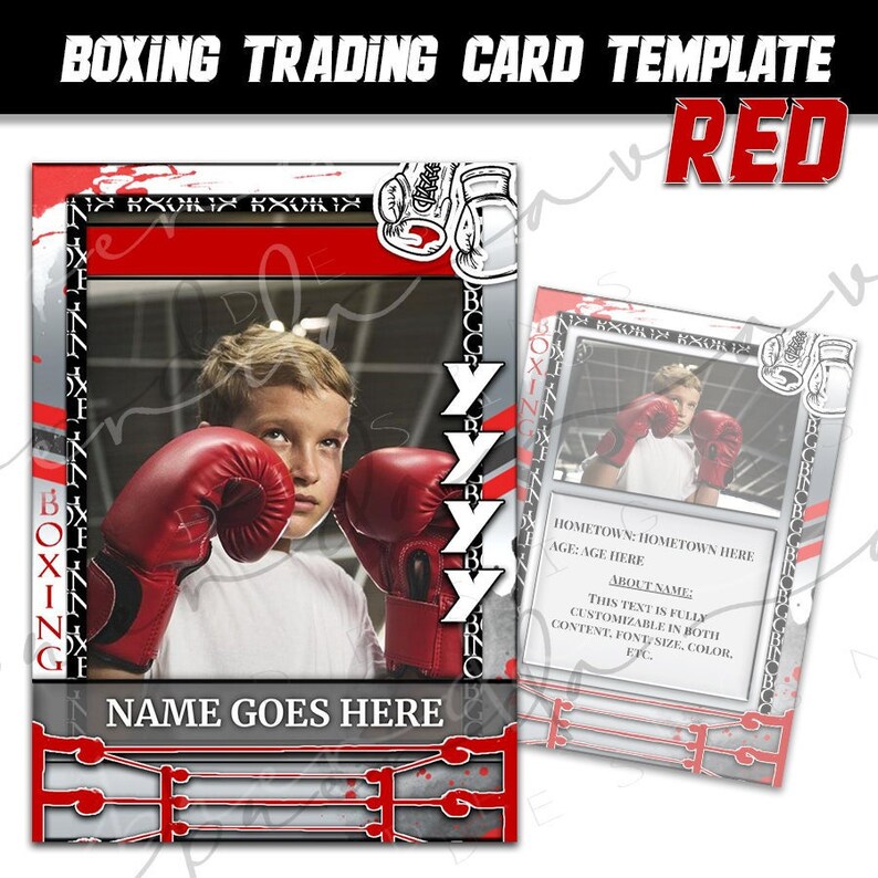 Boxing Trading Card Template Red Black Google Slides Etsy