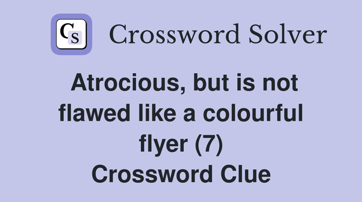 Atrocious but is not flawed like a colourful flyer (7) Crossword