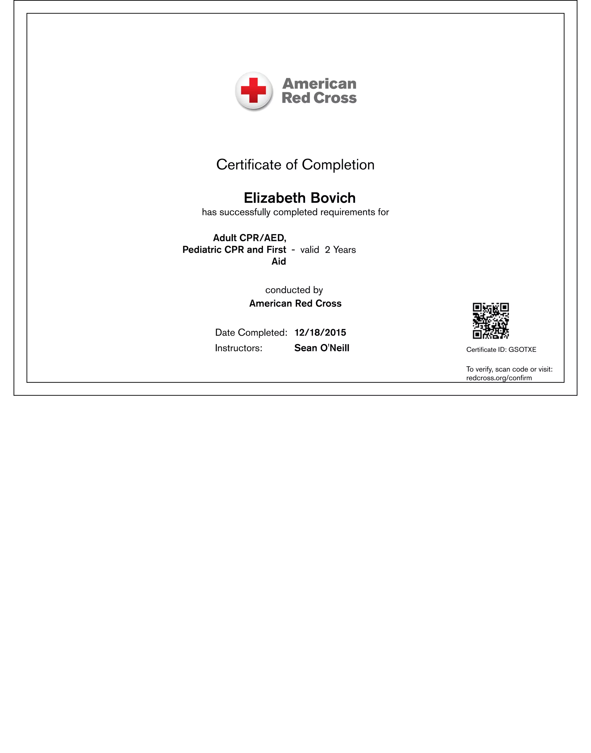Red Cross First Aid Certificate