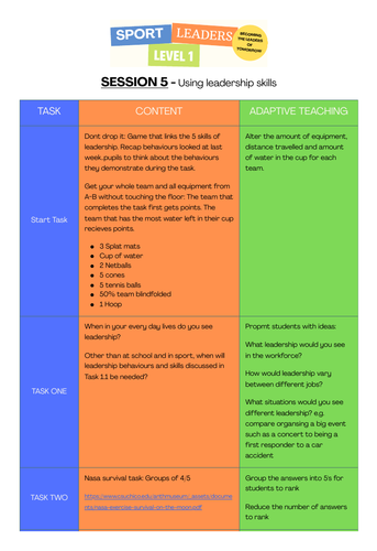 Sports Leaders Level 1 Lesson Plan 5 Teaching Resources