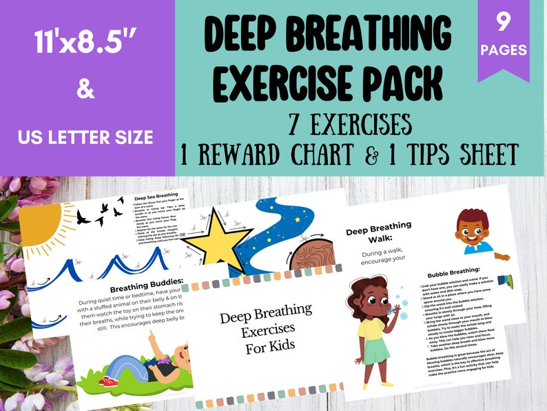 Deep Breathing Exercises Printable Pack for Kids Family friendly Stress