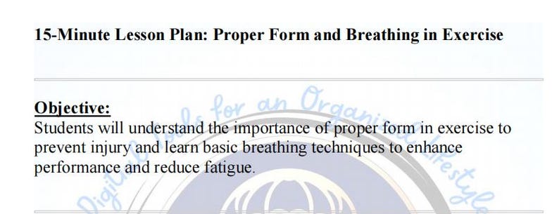 Digital PE Lesson Plan for Kids on Proper Form and Breathing: Fun