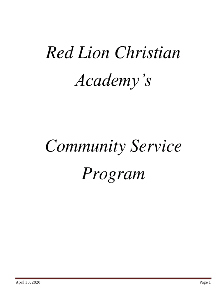 Fillable Online Red Lion Christian Academy #39 s Community Service Program