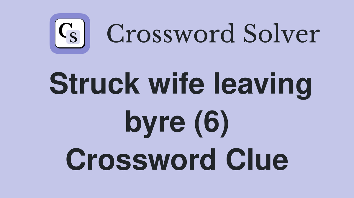 Struck wife leaving byre (6) Crossword Clue Answers Crossword Solver