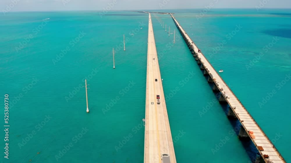 Old Seven Mile Bridge Drone view of a low water bridge across the