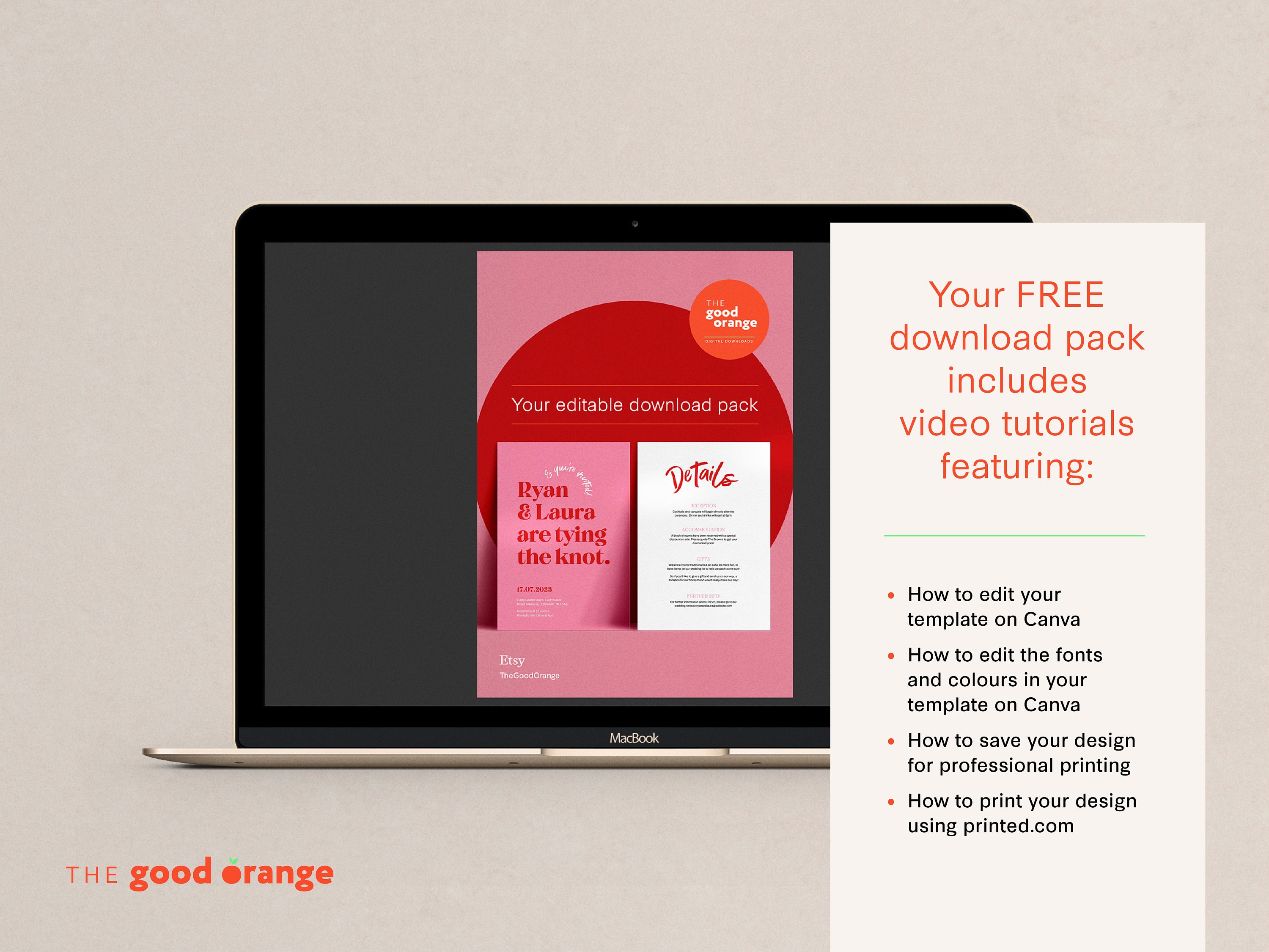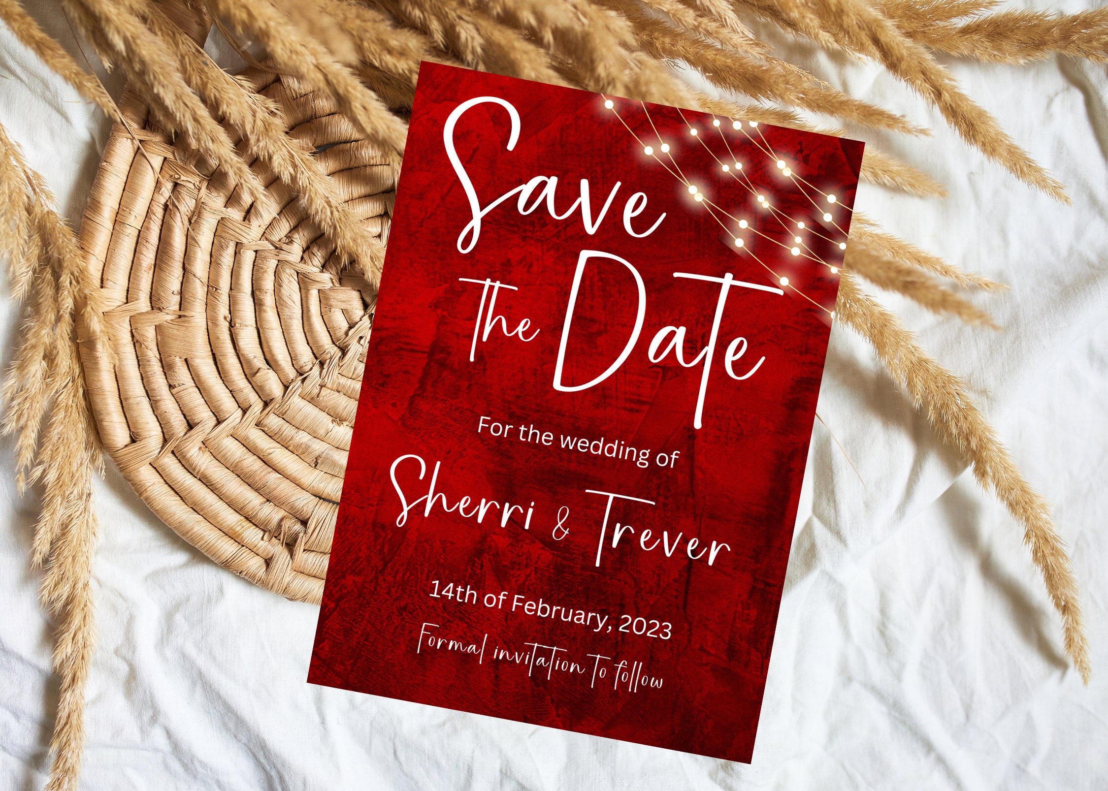 Pink and Red Wedding Invitation Template / Editable Modern Wedding