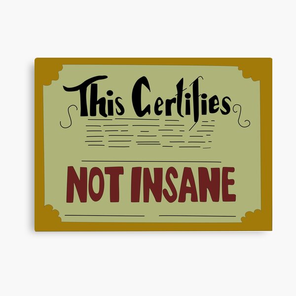 quot Not insane certificate quot Canvas Print for Sale by Karen2690 Redbubble