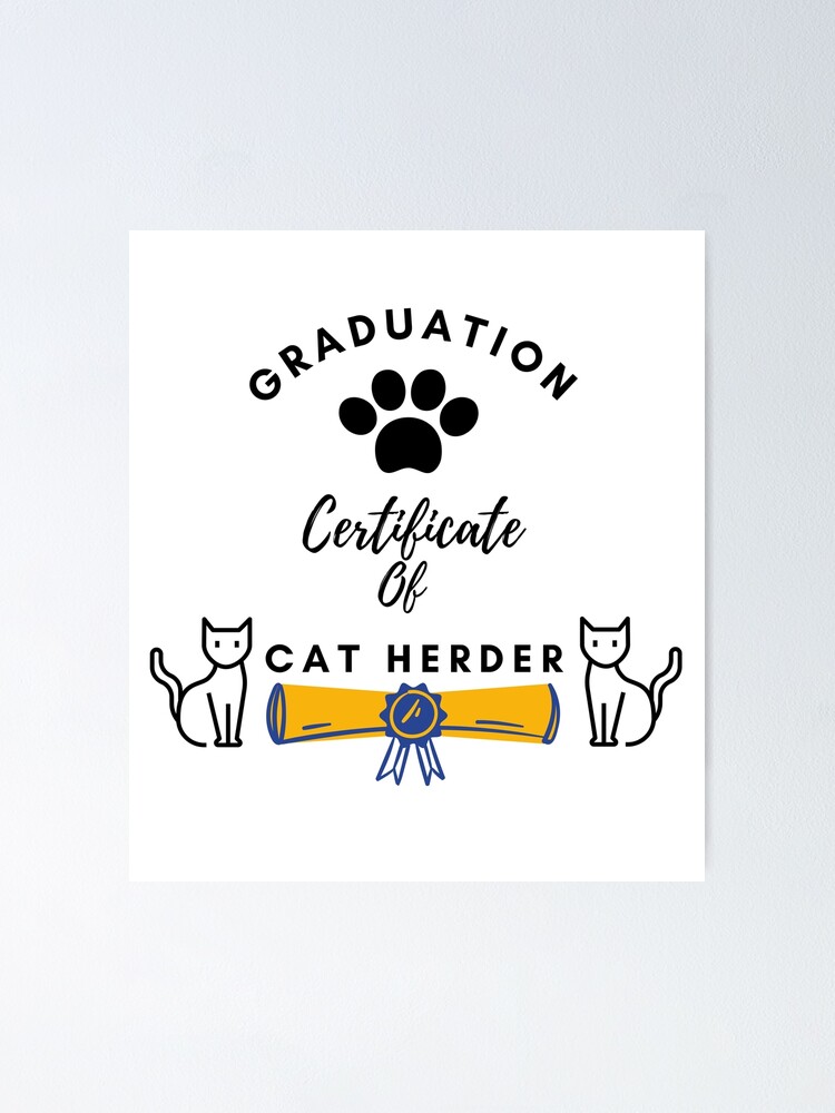 quot Graduation Certificate Of Cat Herder Funny Shirt quot Poster for Sale by