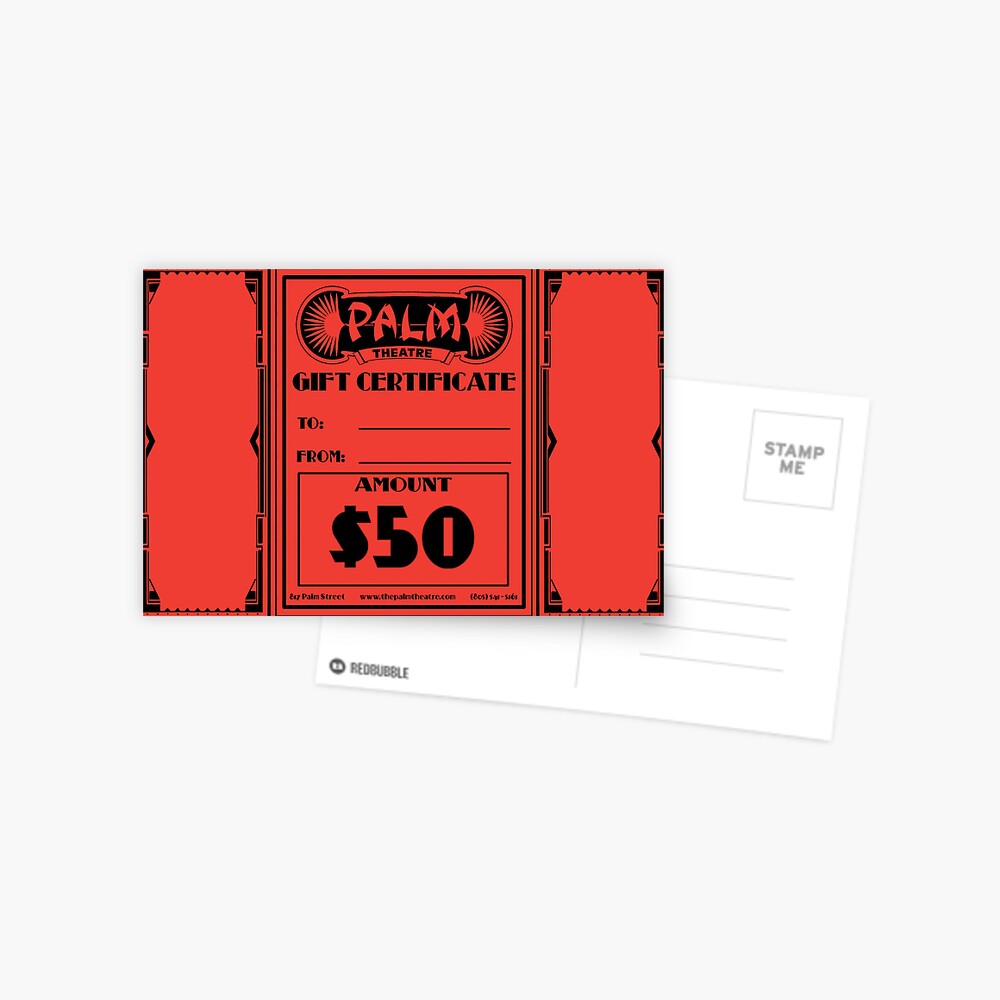 quot $50 GIFT CERTIFICATE quot Postcard for Sale by PalmTheatre Redbubble