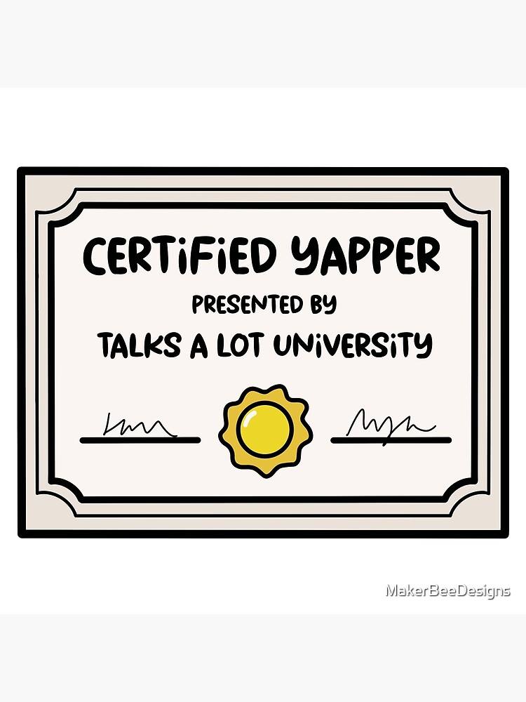quot Certified Yapper Certificate quot Poster for Sale by MakerBeeDesigns