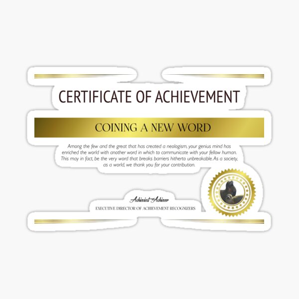 quot Coining a New Word Certificate quot Sticker for Sale by ACAmes Redbubble