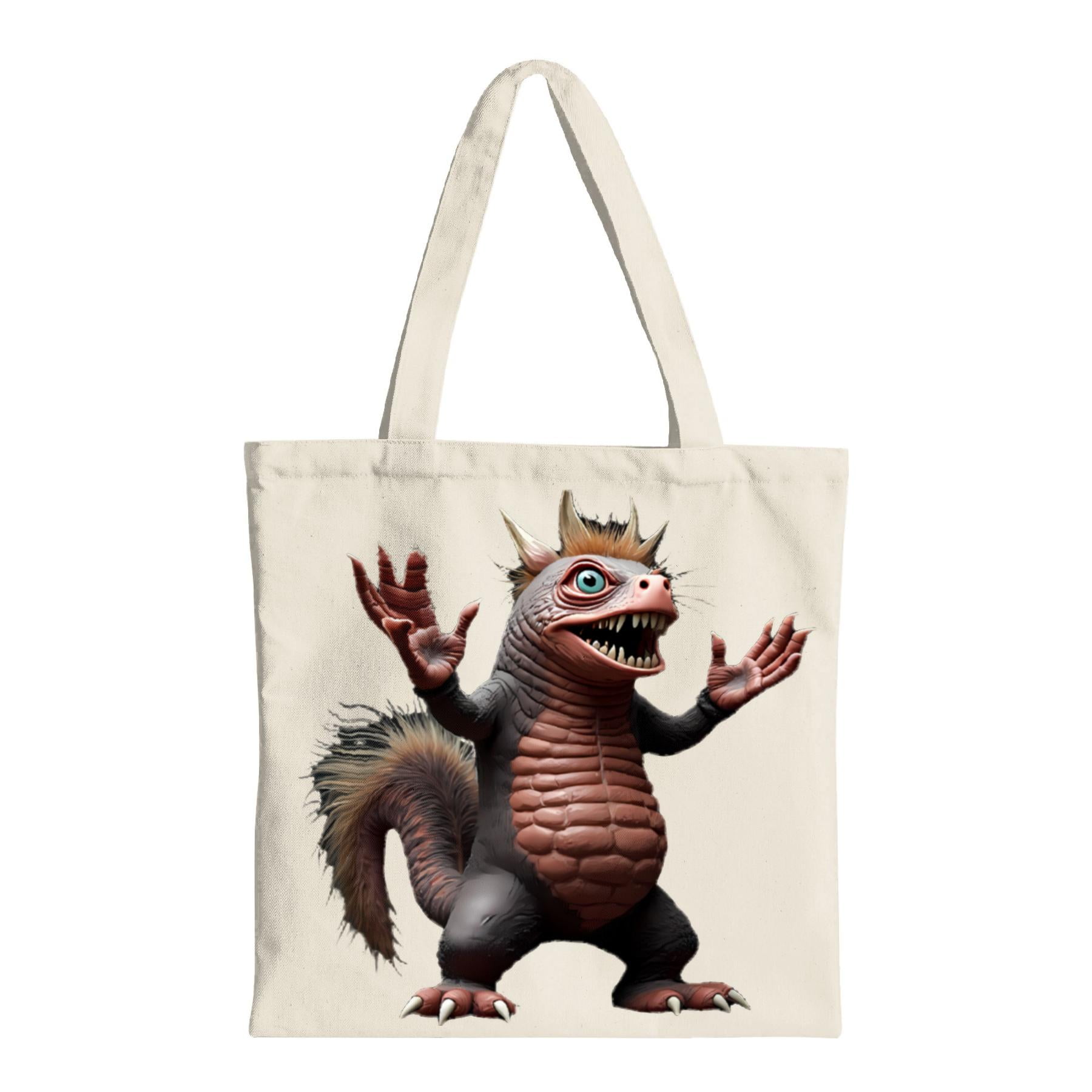 Cartoonish Creature Tote Bag Dark Body with Reddish Brown Scales
