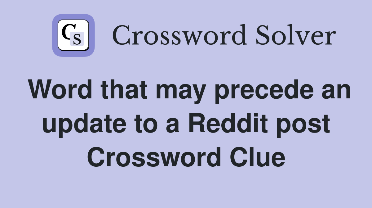 Word that may precede an update to a Reddit post Crossword Clue