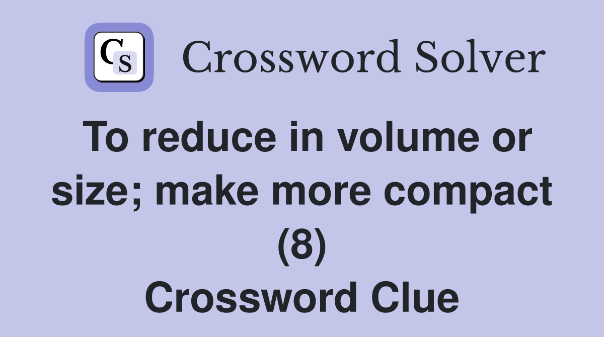 To reduce in volume or size make more compact (8) Crossword Clue