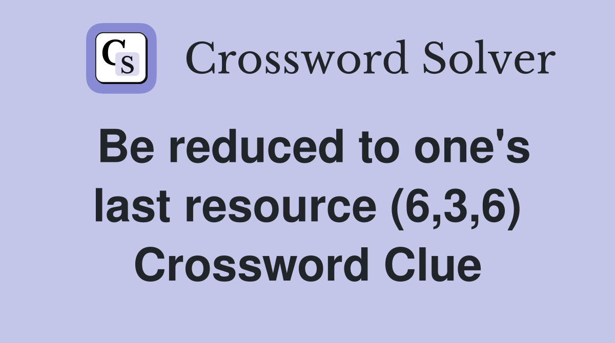 Be reduced to one s last resource (6 3 6) Crossword Clue Answers